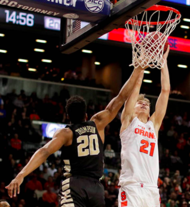 Dolezaj tipped the scale of offense Syracuse’s way with another driving finish before the first break to reach 11 points and another 11 point lead. His run of scoring surged on, another pass attempt through the post got tipped and he snatched it out of the air and dunked again to lift the Orange up 45-34.
