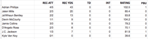 After throwing a pick-six on his first pass attempt in Sunday’s loss, Jones added 0.19 expected points per drop-back (68th percentile) and averaged 8.7 yards per pass attempt.