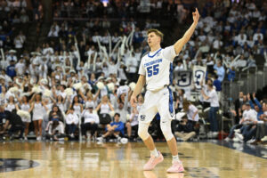In a highlight moment earlier on at Capital City, with one second remaining in the half, he stepped out of bounds after an opposing make, turned and fired a full court touchdown pass to Davison. Tom Leininger, Scheierman’s high school coach, texted him after the game saying he’s seen that too many times.
