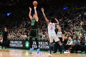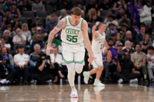 Scheierman’s NBA breakout happened in March after the Celtics slipped-up, falling behind to the Nets before halftime, who pushed them to within two points before the buzzer days earlier. He made a brief first quarter appearance where he split a pair of threes, then he hit a go-ahead basket before the buzzer at the end of the third quarter after Brooklyn took a foul on him. Kristaps Porziņģis caught his in-bounds pass, fired it back to Scheierman, who buried a shot from the in-bounds line. He leaped toward the Boston bench, kissed three fingers and pointed them in the air.