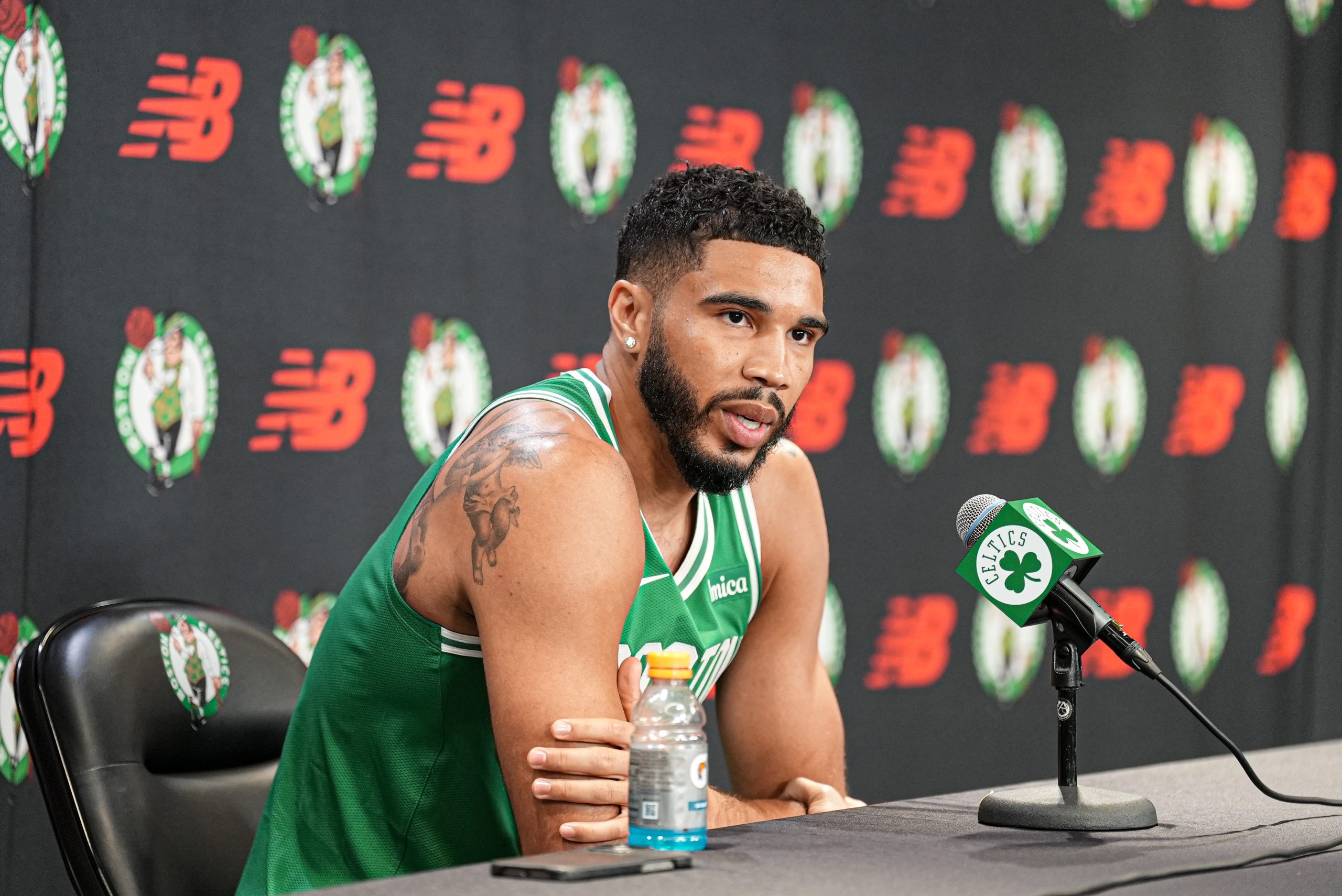 Jayson Tatum at Boston Celtics Media Day on September 24, 2024. (Photo by Rich LeMay, CLNS).