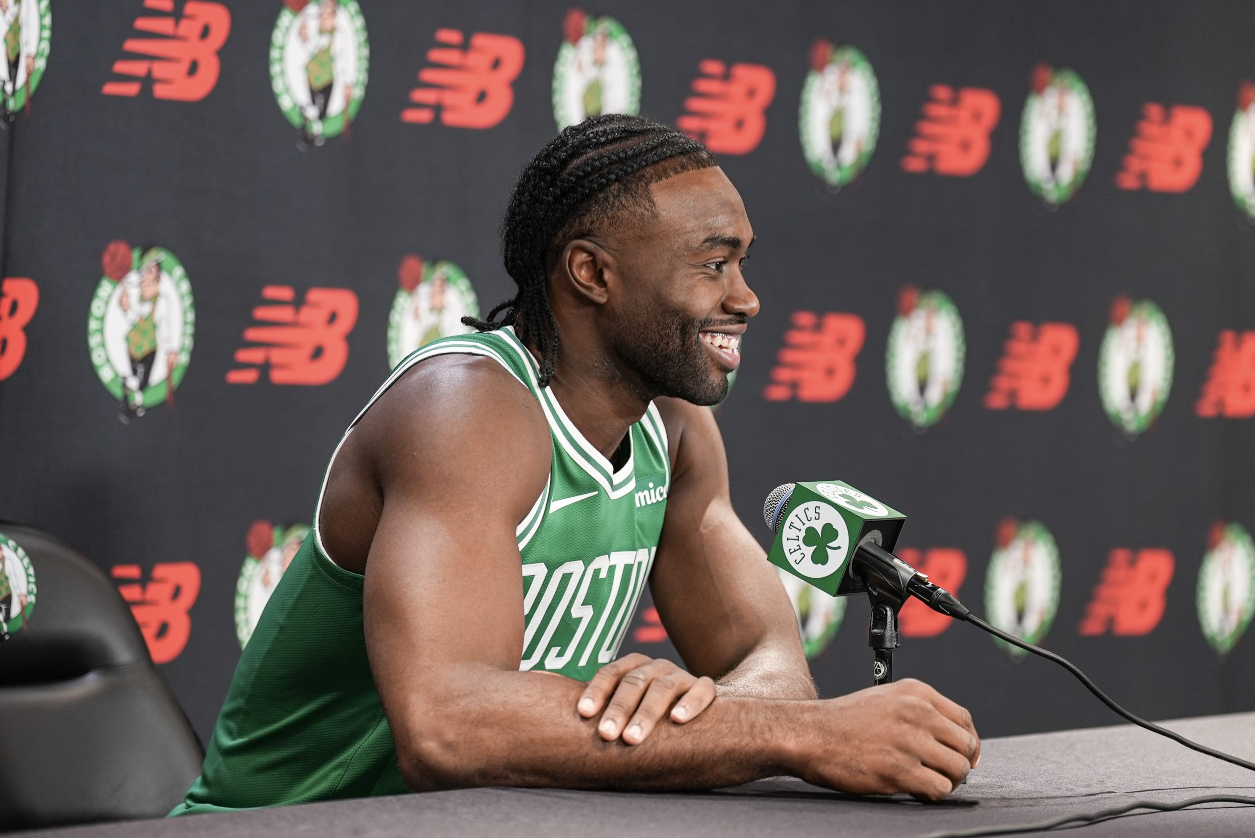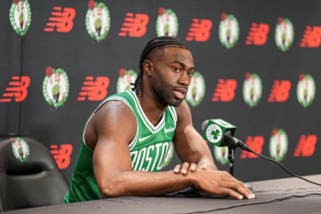 Jaylen Brown at Boston Celtics Media Day on September 24, 2024. (Photo by Rich LeMay, CLNS).
