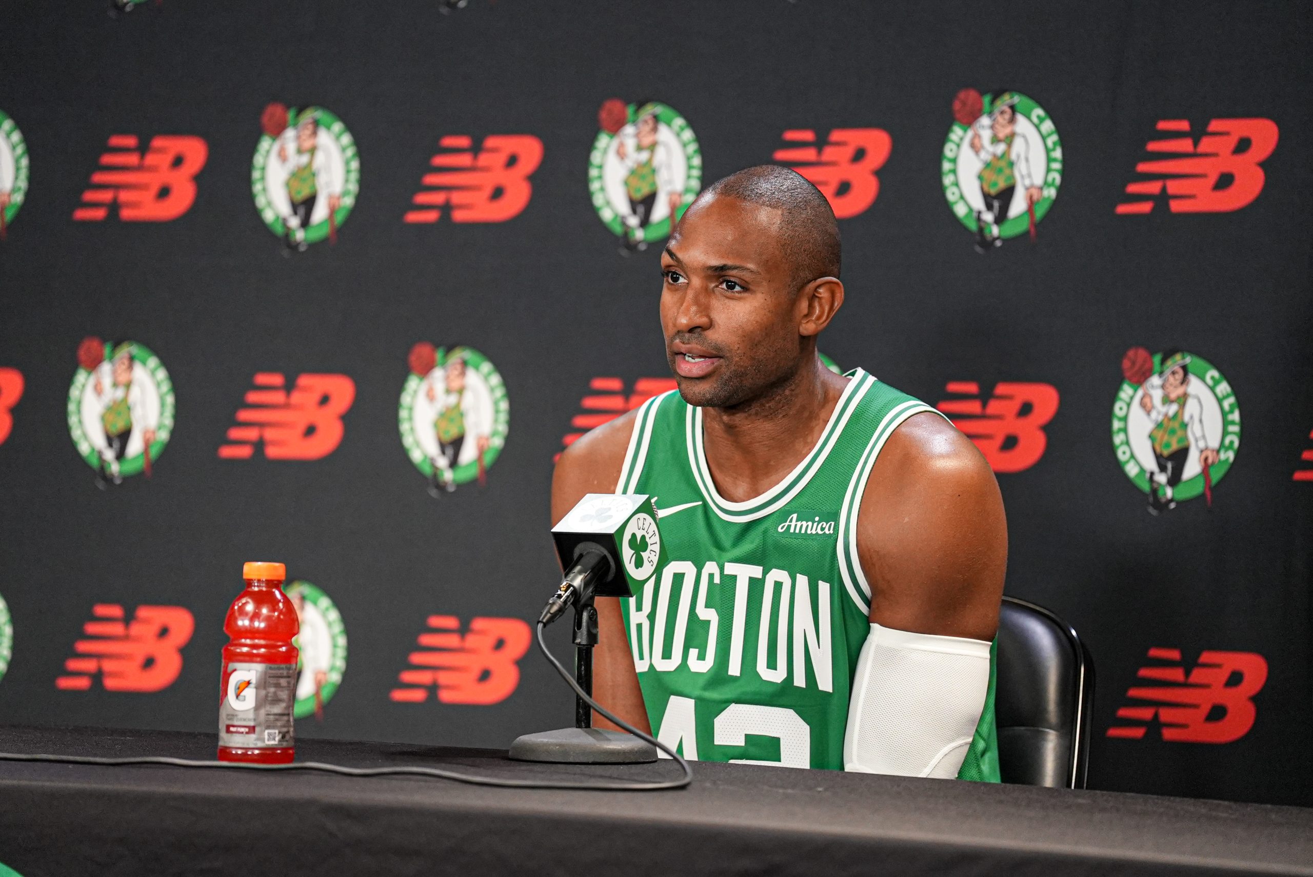 Al Horford at Boston Celtics Media Day on September 24, 2024. (Photo by Rich LeMay, CLNS).