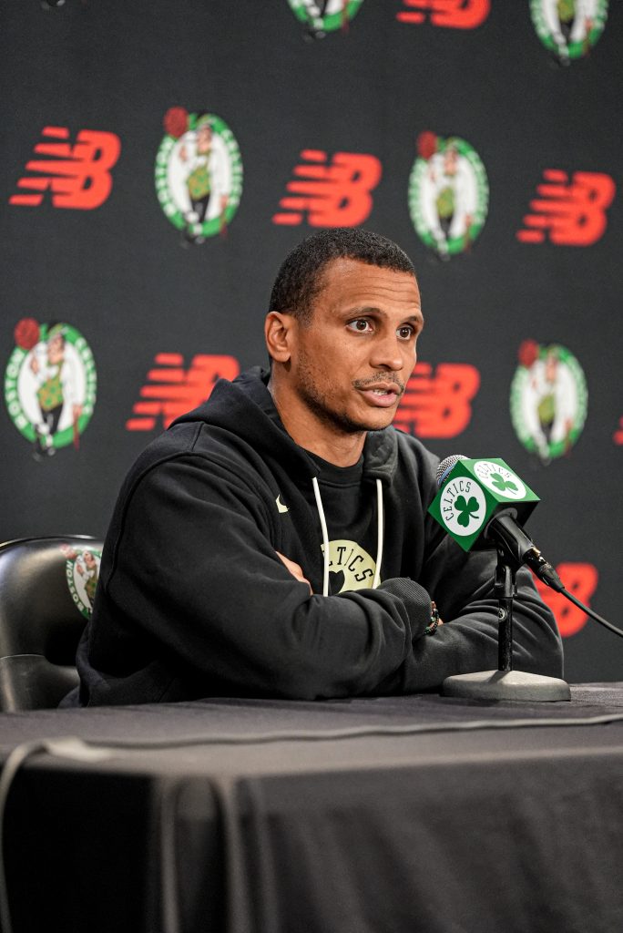 Joe Mazzulla at Boston Celtics Media Day on September 24, 2024. (Photo by Rich LeMay, CLNS).