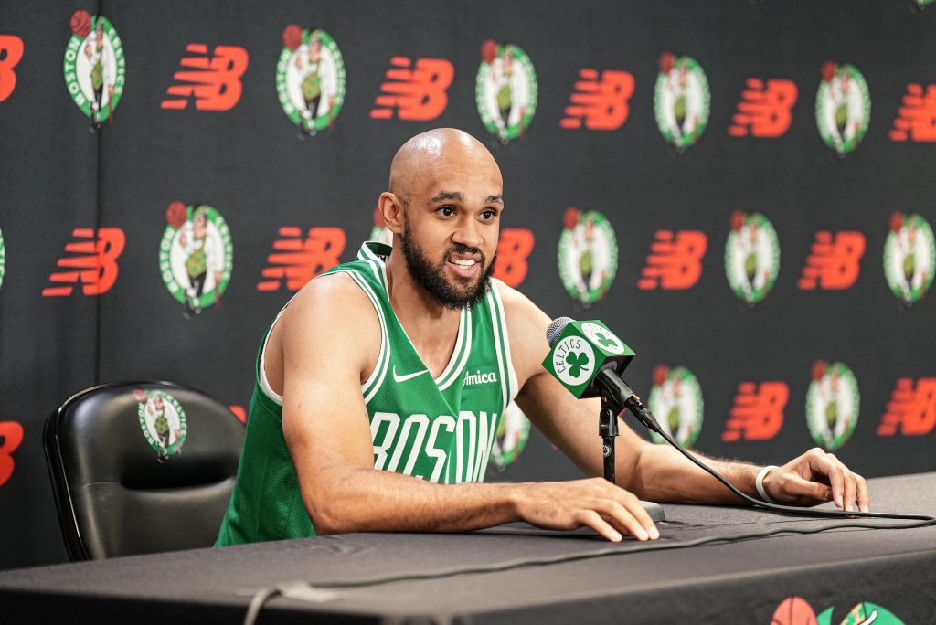 Derrick White at Boston Celtics Media Day on September 24, 2024. (Photo by Rich LeMay, CLNS).