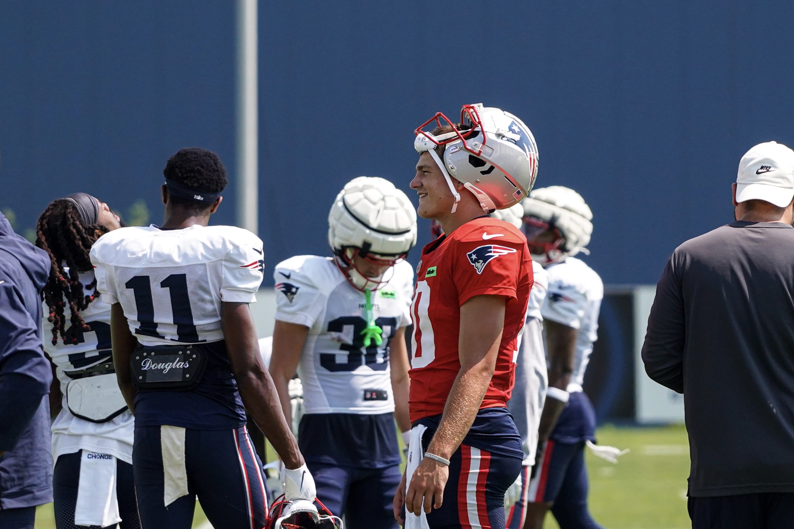 Drake Maye at Day 10 of Patriots Training Camp on August 5th, 2024. Photo by Rich LeMay (CLNS Media).