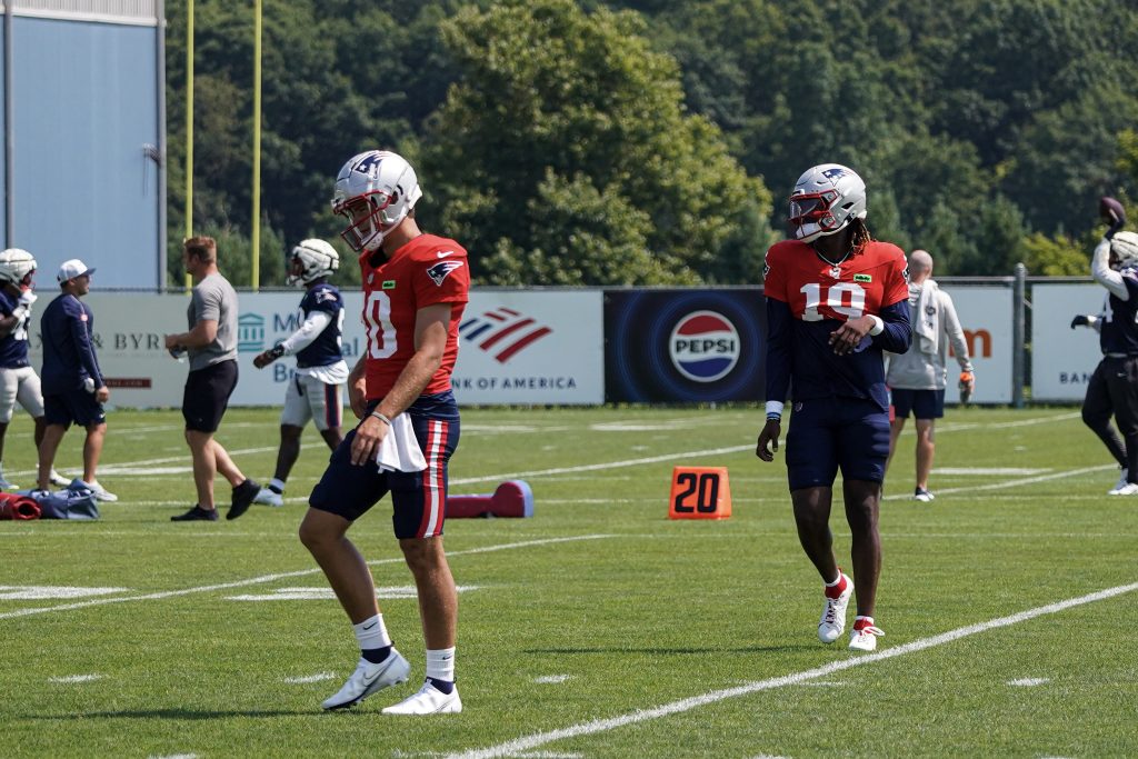 Drake Maye and Joe Milton at Day 10 of Patriots Training Camp on August 5th, 2024. Photo by Rich LeMay (CLNS Media).