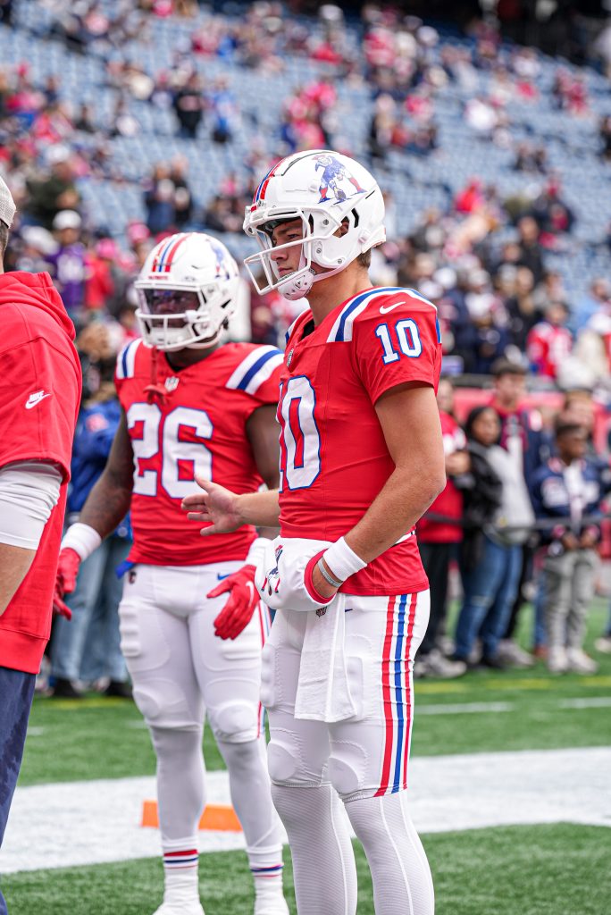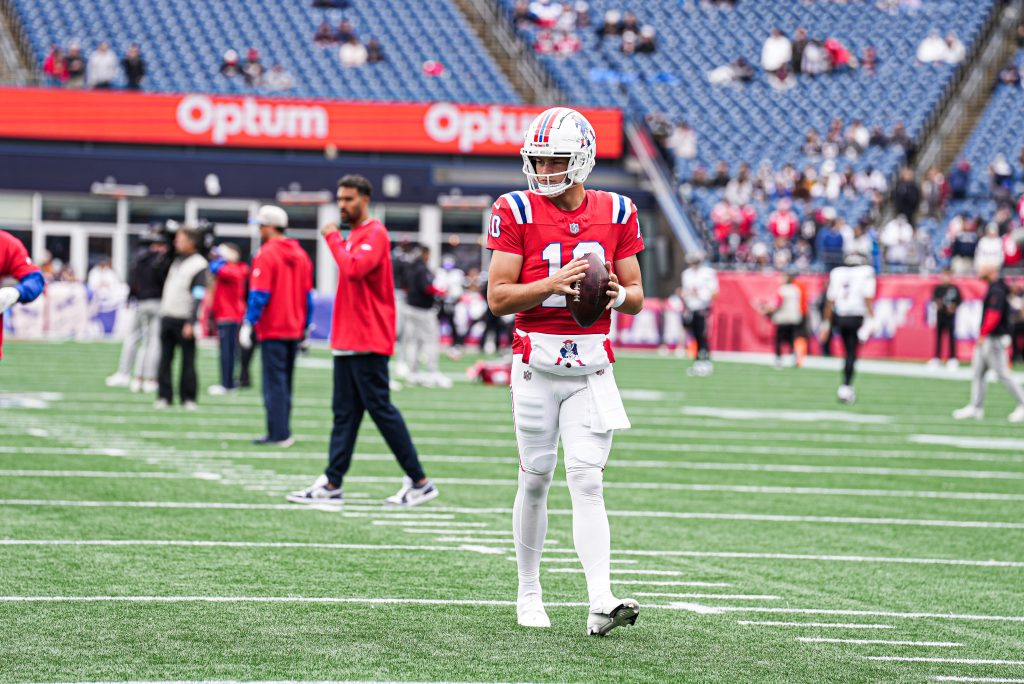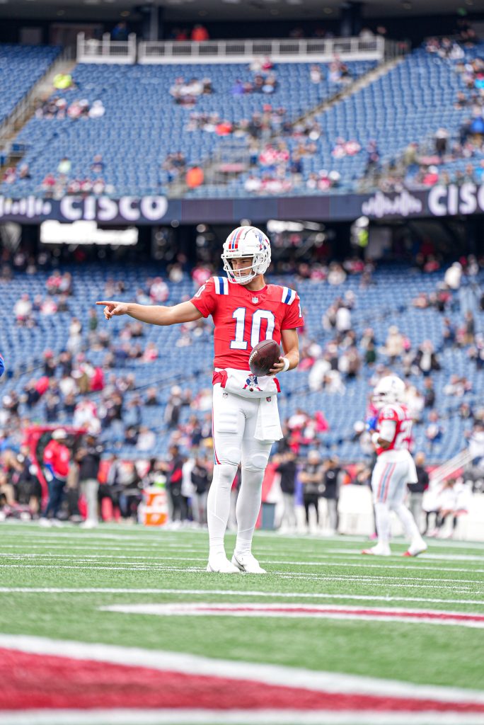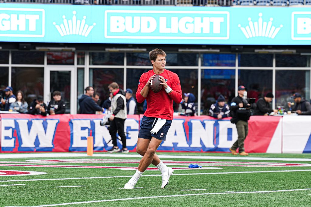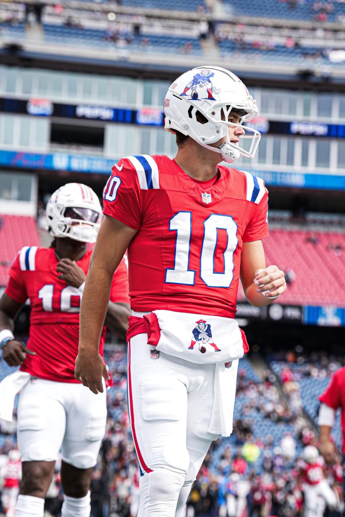 Drake Maye at New England Patriots vs. Houston Texans Week 6 on October 13th, 2024. Photo by Rich LeMay (CLNS Media).