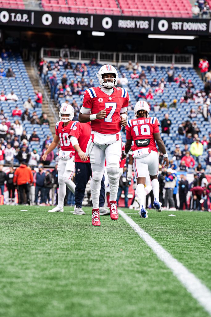 Jacoby Brissett at New England Patriots vs. Houston Texans Week 6 on October 13th, 2024. Photo by Rich LeMay (CLNS Media).