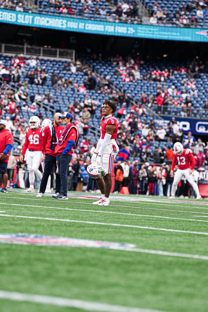 Christian Gonzalez at New England Patriots vs. Houston Texans Week 6 on October 13th, 2024. Photo by Rich LeMay (CLNS Media).