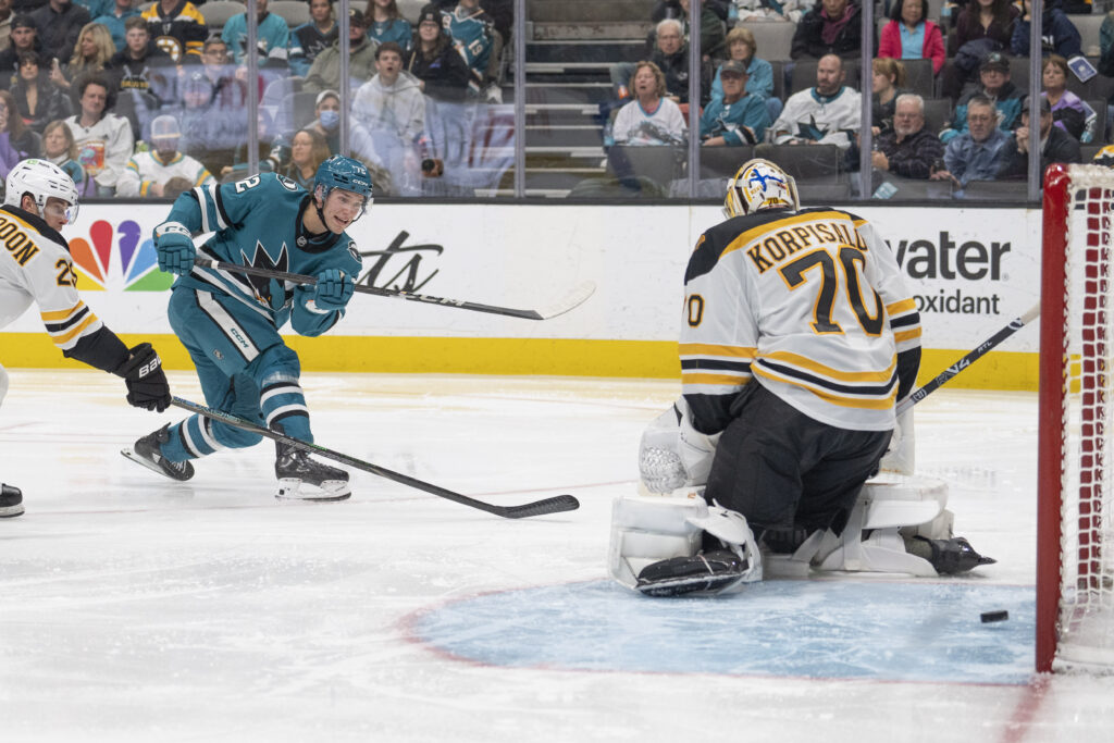The game remained scoreless until two minutes to go in the second period. New Bruins forward Casey Mittlestadt got taken off the puck in the offensive zone leading to a Sharks breakout. Number one overall draft pick and former BU standout Macklin Celebrini slid a beautiful cross-ice pass to William Eklund who beat beat Joonas Korpisalo 5 hole to give the Sharks a 1-0 lead.