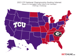 BetOnline ran a Twitter poll to determine which states are rooting for TCU and which are rooting for Georgia across the country: