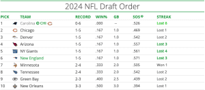 After six games, New England is tied for the second-worst record in the sport, but various tiebreakers lead them to currently holding the 6th overall pick, according to Tankathon, if the season ended today: