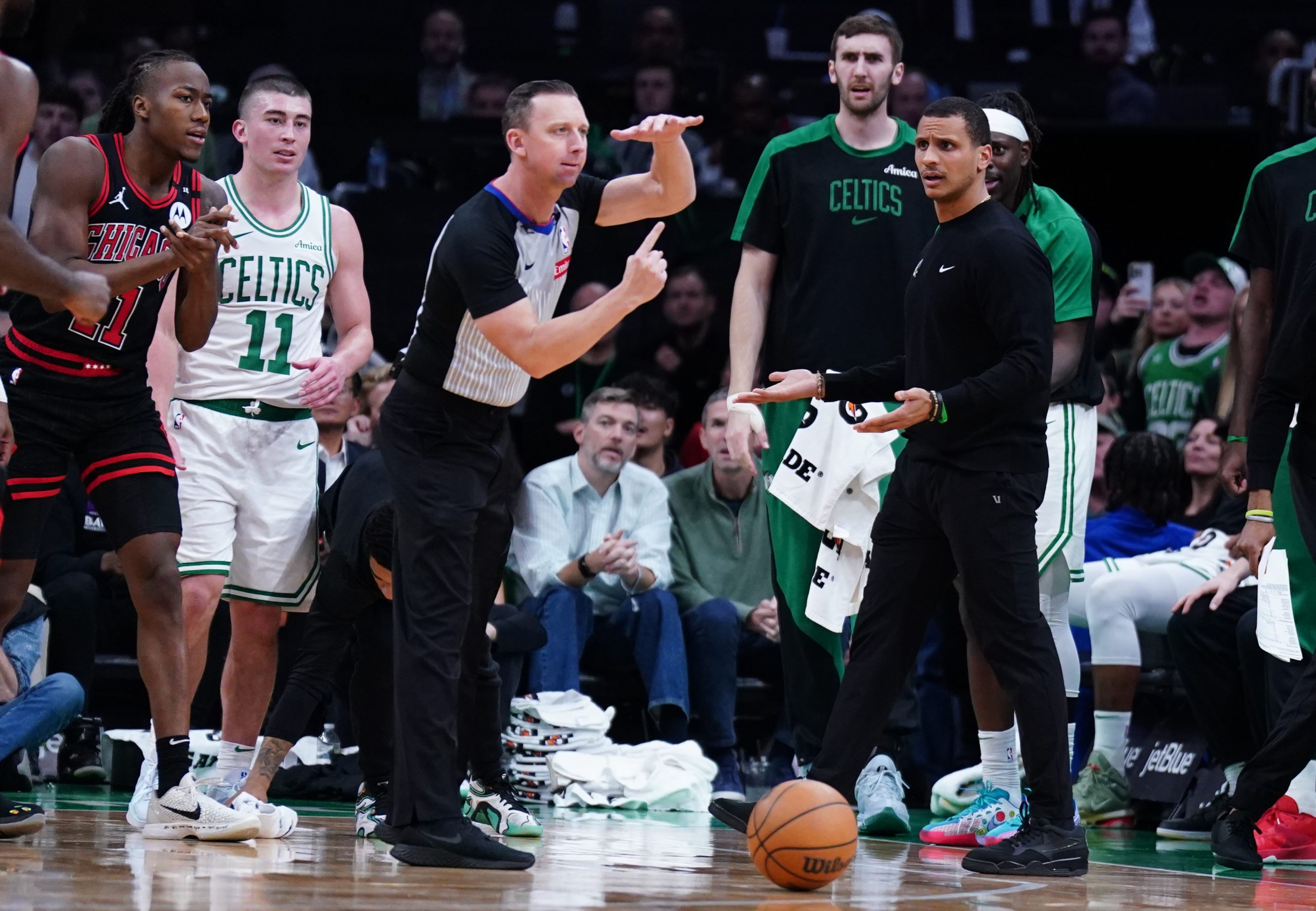 The Celtics trailed, 99-96, with five minutes remaining, then back-to-back technical fouls on Mazzulla and Jaylen Brown, followed by one moments later on Jayson Tatum sent Boston a spiral in the final minutes of a game that featured 16 lead changes and nine ties. It’s unclear what frustrated the Celtics initially, Payton Pritchard forcing a jump ball on Ayo Dosunmu before Mazzulla stepped onto the floor to communicate something to the officials.