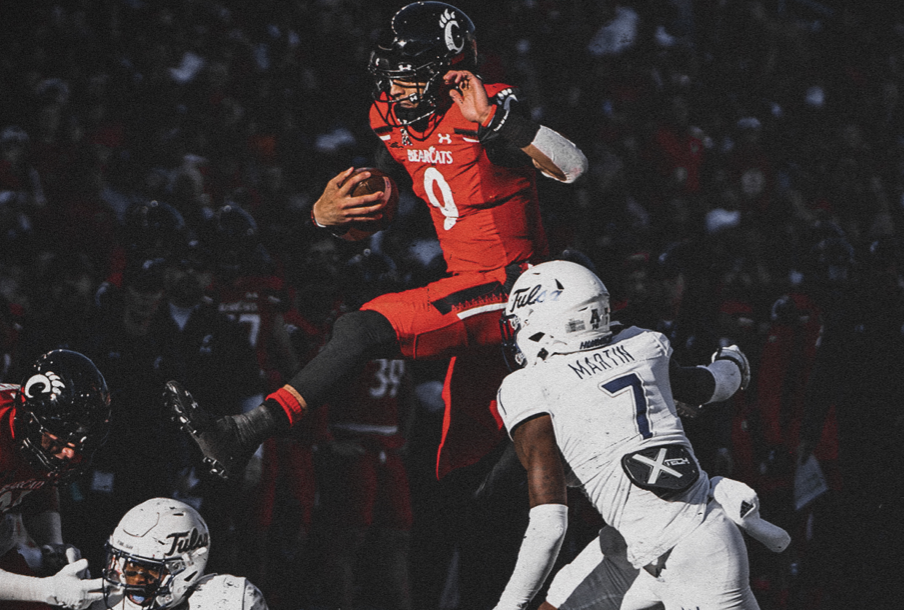 Desmond Ridder (9) and the Bearcats were able to leap over a pesky Tulsa team Saturday at Nippert.