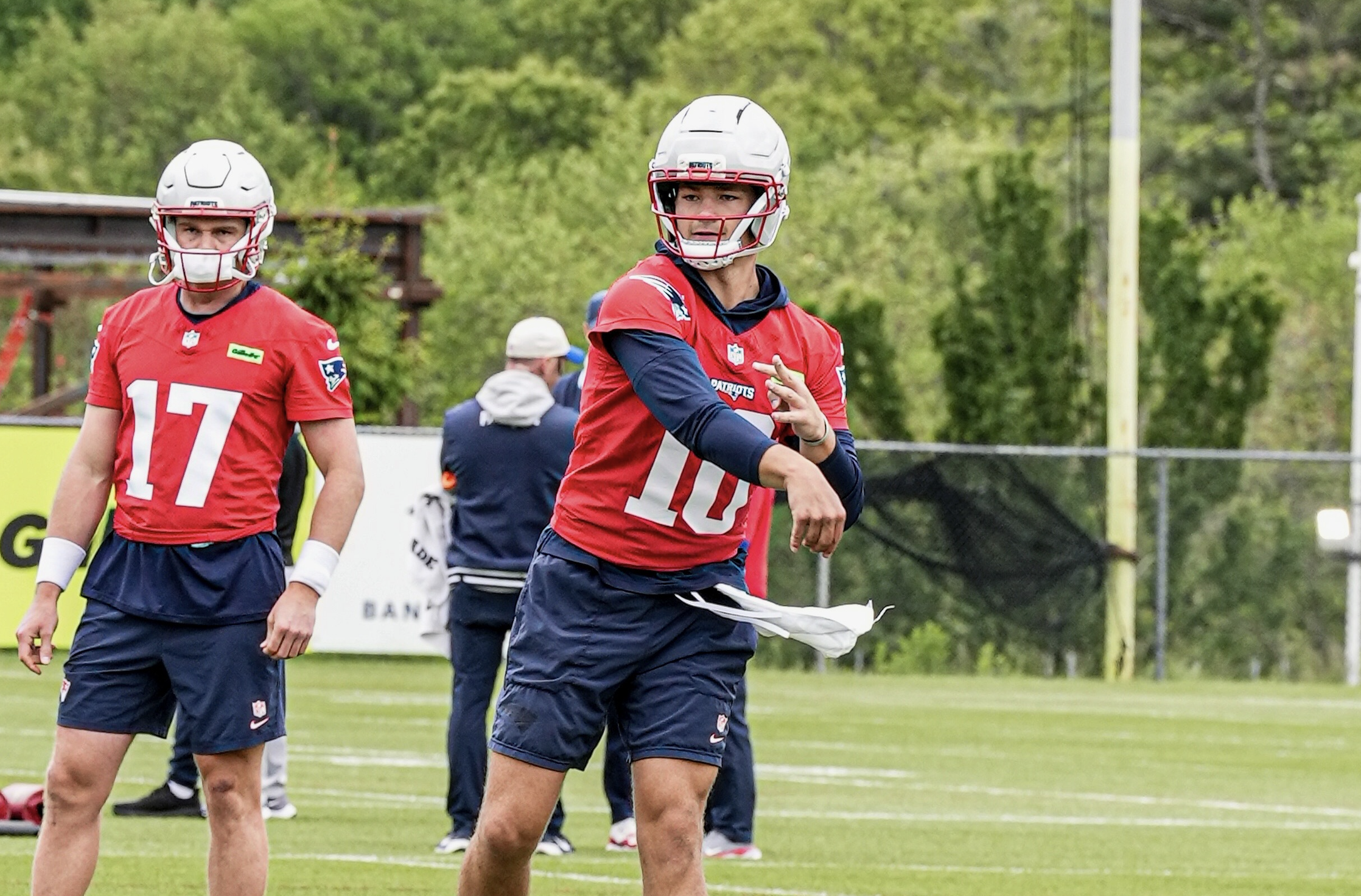 Maye’s day technically ended on a low note, as Jaylinn Hawkins broke up an out-breaker thrown behind Kyle Williams (and Mike Vrabel reminded the veteran to ease up in what’s essentially a passing camp). Still, it was easily Maye’s most well-rounded performance and one that offered a glimpse of what he’s capable of once in rhythm.