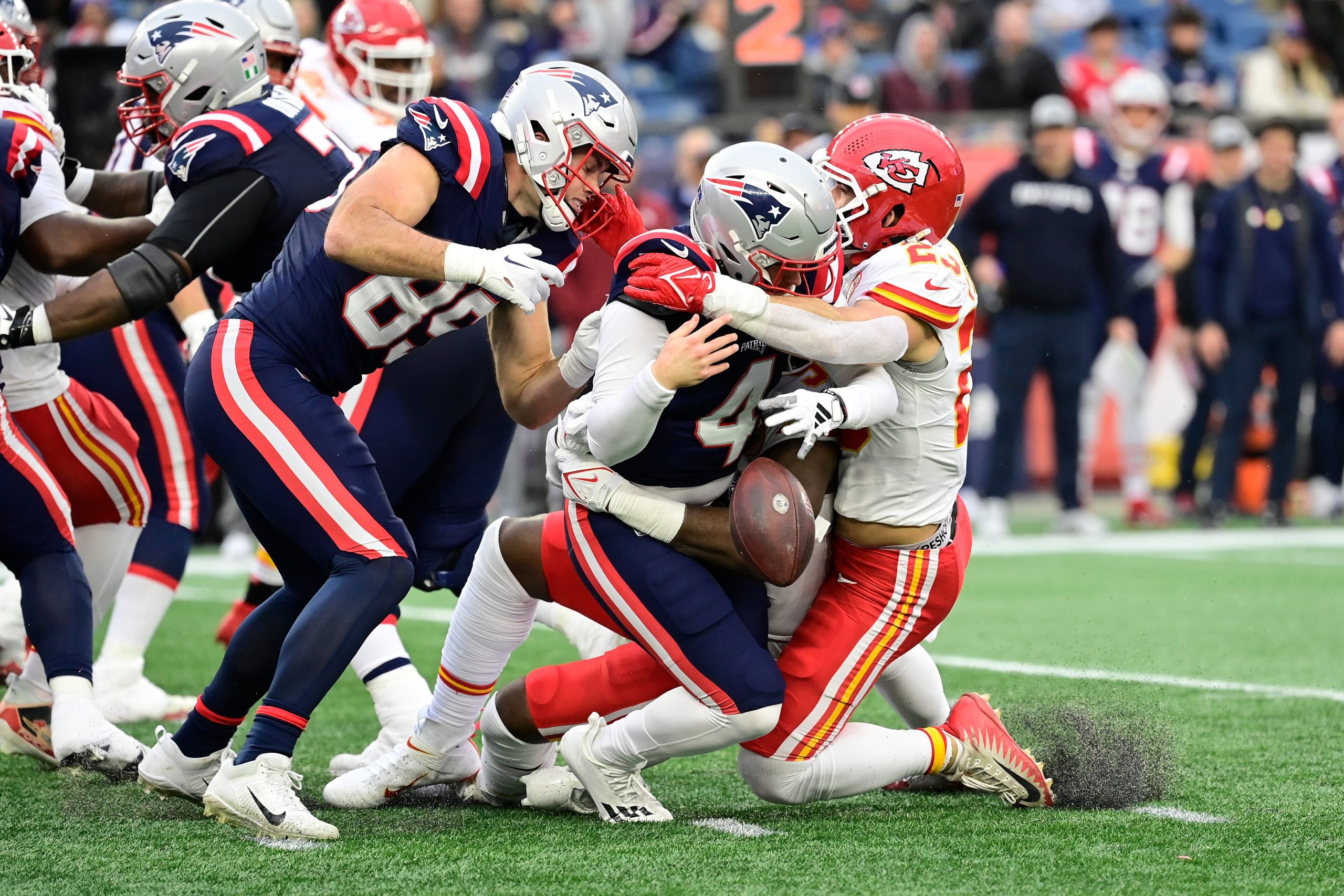 The odds weren’t in Belichick’s favor with the Chiefs coming to town, despite a 2-2 career record against reigning MVP and Super Bowl champion Patrick Mahomes. A banged-up receiver group saw Demario Douglas (head) and DeVante Parker (knee) return to the lineup, but JuJu Smith-Schuster (ankle) and Kayshon Boutte (shoulder) were ruled out. Left tackle Trent Brown (ankle/hand/illness) was also ruled out after rotating with Conor McDermott the past few games.