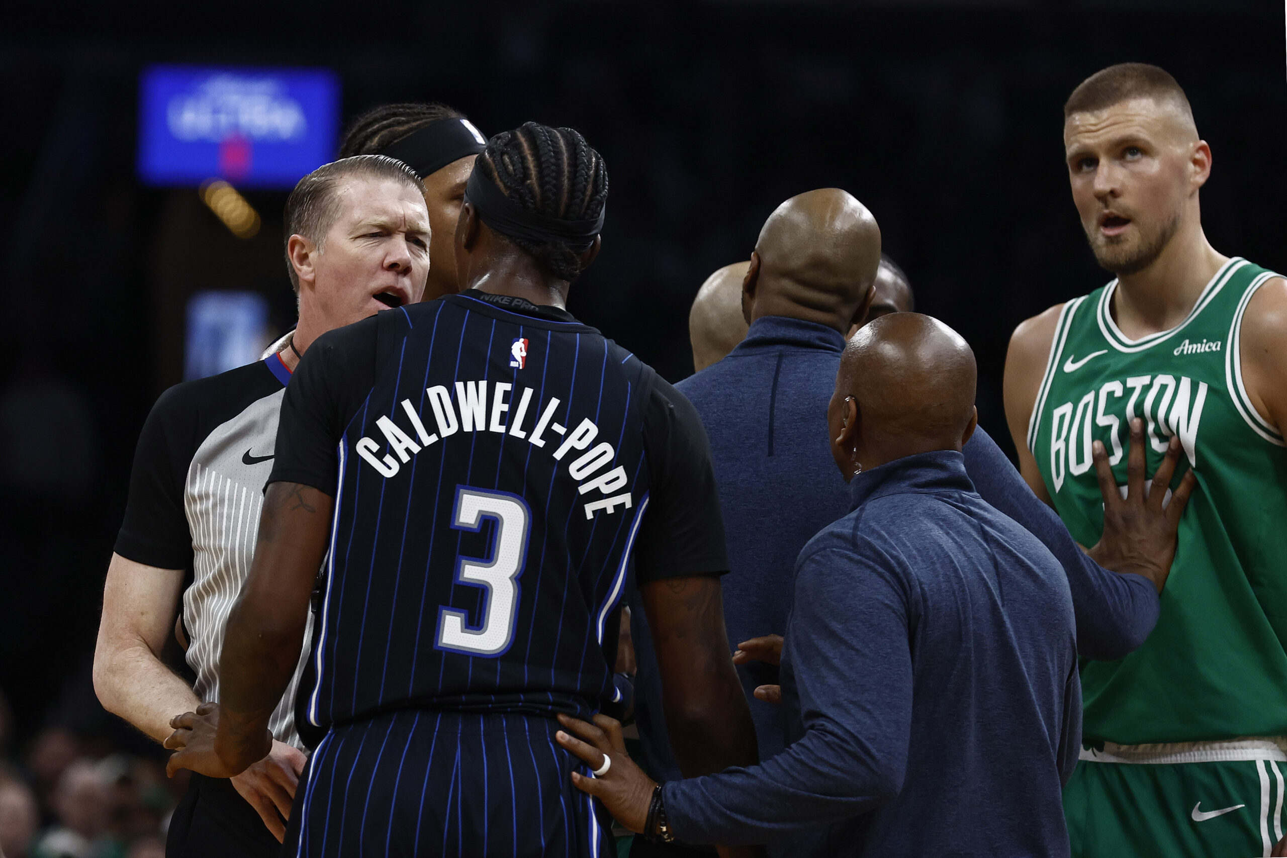 Caldwell-Pope embraced the hostilities, pumping up the crowd early, while Joe Mazzulla pulled Horford away from the brief scrum before Boston huddled up as a team. Officials did not call a flagrant on Caldwell-Pope this time, who began the game pumping his arms as the crowd booed him following a foul. His Magic teammates and head coach Jamahl Mosley defended him in the aftermath of the play, and maintained they’d stay true to their physical style. Cole Anthony even celebrated getting Boston to complain about them — taking it as a victory.