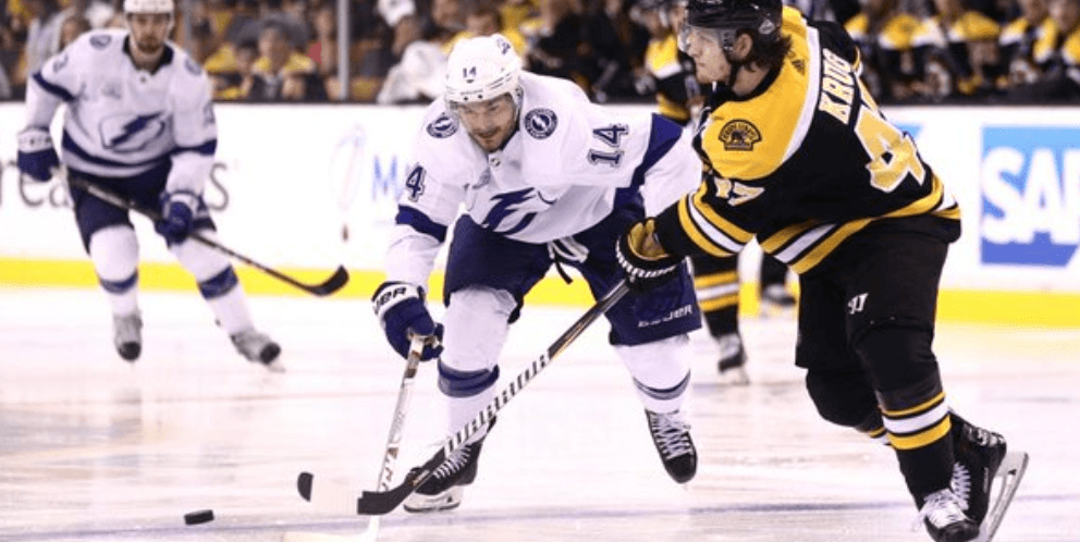 The Lightning started their most productive line of the series so far – their second line featuring Ondrej Palat, Tyler Johnson and Brayden Point. In their second shift against Boston’s third line, they took advantage of a turnover by rookie defenseman Matt Grzelcek, as Johnson found Palat all alone in front just 1:47 into the game. Just 92 seconds later, it was Palat again and it was 2-0. It was target practice and the Garden ice was a way too comfortable shooting range for the Lightning.
