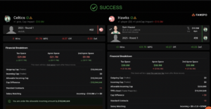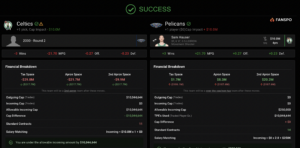 Taking on Hauser into a TPE pushes the Pelicans tight against the first apron ($8.3M) before signing their No. 7 overall pick for as much as $7.6-million next year. But those two additions would fill their roster with 15 players. Trey Murphy III and Jordan Hawkins provide overlapping skill sets and the Pelicans have limited future second round capital to offer Boston, putting this deal into some doubt, but the money works for both sides.